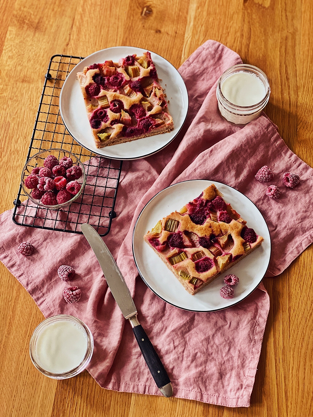 Joghurt Rhabarber Himbeer Kuchen Vom Blech Ideal Protein Recipes High Protein Breakfast Breakfast